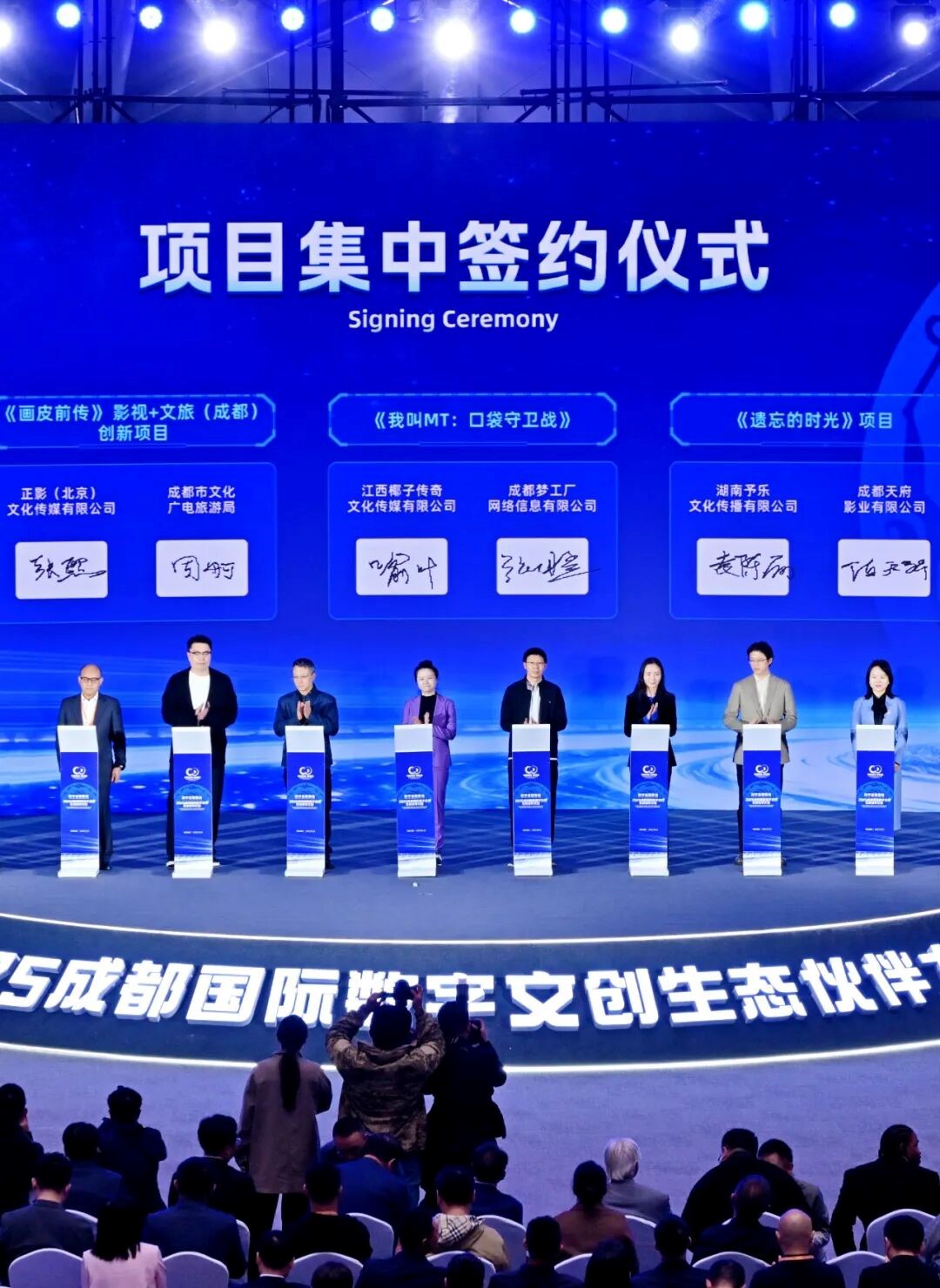 金秋十月,,,一场由“王者荣耀”、、、“哪吒”等顶级IP 引爆的2025成都国际数字文创生态伙伴大会在科创生态岛召开。。。。现场,,,,发布成都数字文创百亿合作机会清单,,,,成立国际数字文创产业联盟,,并集中签约重点项目,,总金额近百亿元。。。。大会聚焦影视动漫、、、、游戏电竞等核心赛道,,深入探讨AIGC、、、、IP全球化等议题。。。。腾讯、、、、网易、、、、拳头游戏、、三七互娱、、、、迪士尼、、光线传媒、、、可可豆动画、、亚星管理、、游戏谷等游戏影视企业;星竞威武、、、、AG、、、狼队等电竞俱乐部共同参会,,,携手共建产业生态圈。。